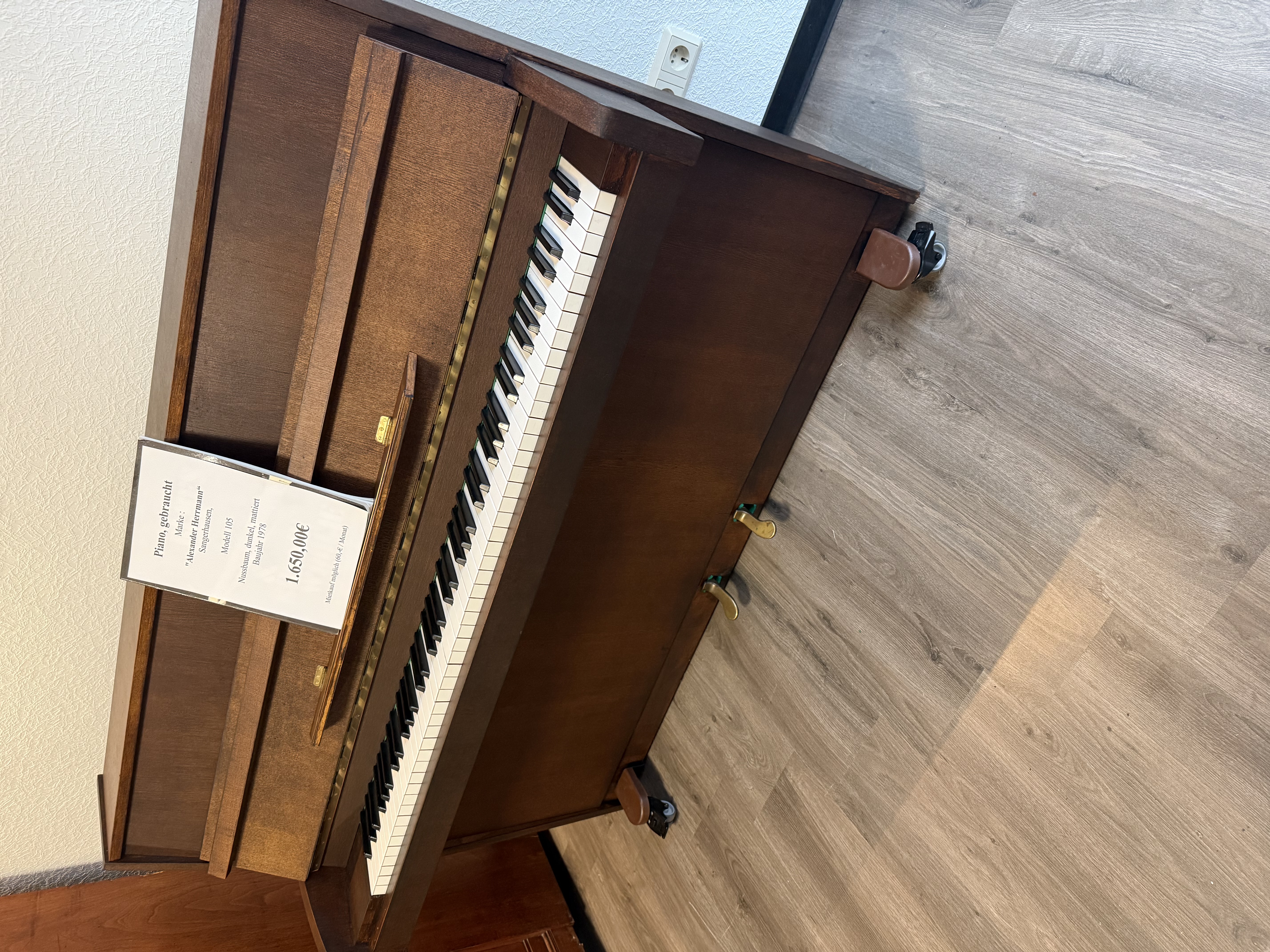 | "Alexander Herrmann" Sangerhausen gebraucht Modell 105 Nussbaum, dunkel matt Baujahr 1978, restauriert 2025 Verkaufspreis: 1.650,00€ (Mietkauf 60€/Monat) |